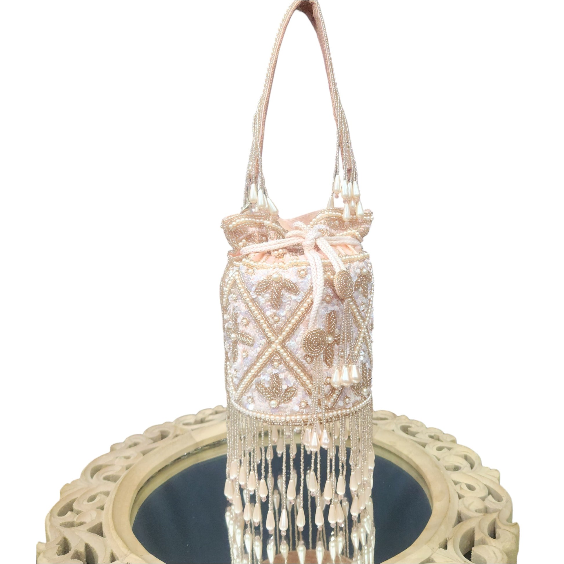 Afreen Sequin Rose Gold Pearl Potli