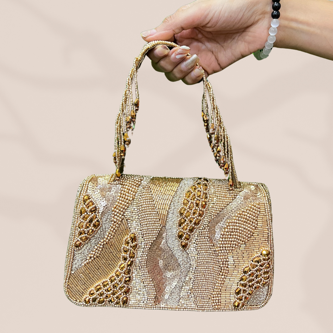 Aurora Antique Gold Beadwork FlapOver Clutch Bag