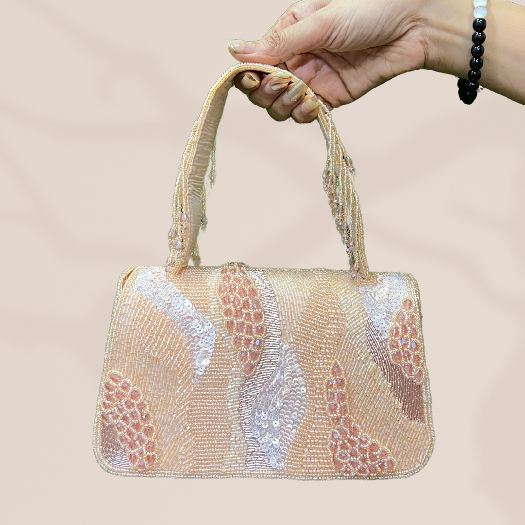Elevate your style with our stunning Flap Box Bag, adorned with pony beads, crystals, seed beads, sequins and cut dana embroidery. Handcrafted to perfection, this bag features intricate handwork on all sides, ensuring a unique and luxurious finish. The flap box design offers both elegance and functionality, with a spacious interior to carry your essentials. Perfect for any occasion, this bag seamlessly transitions from day to night. Experience the beauty of detailed craftsmanship and make a statement with every use. Shop now and embrace the artistry of our exquisite Flap Box Bag.