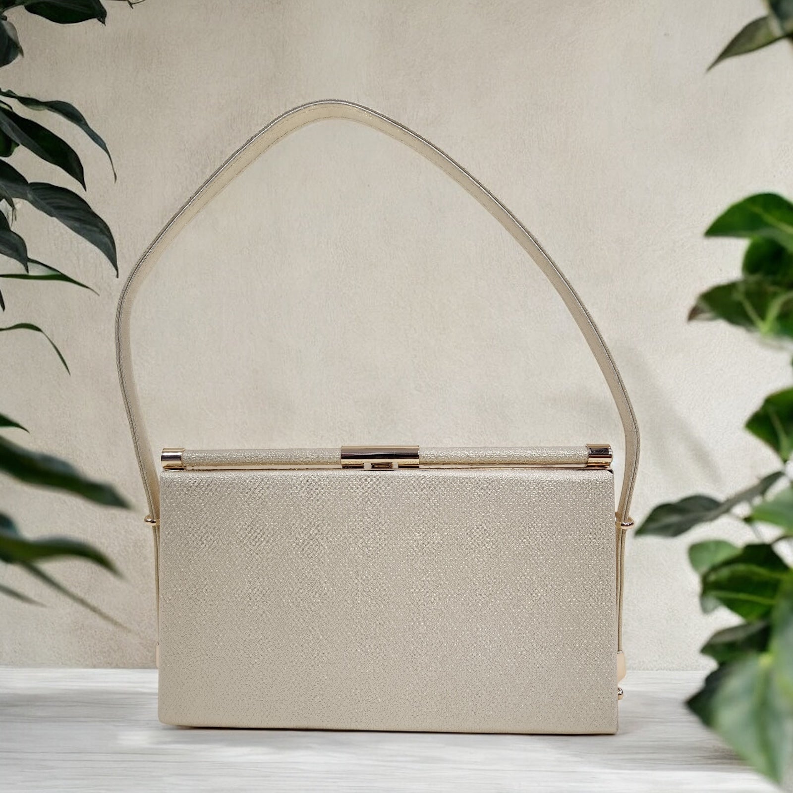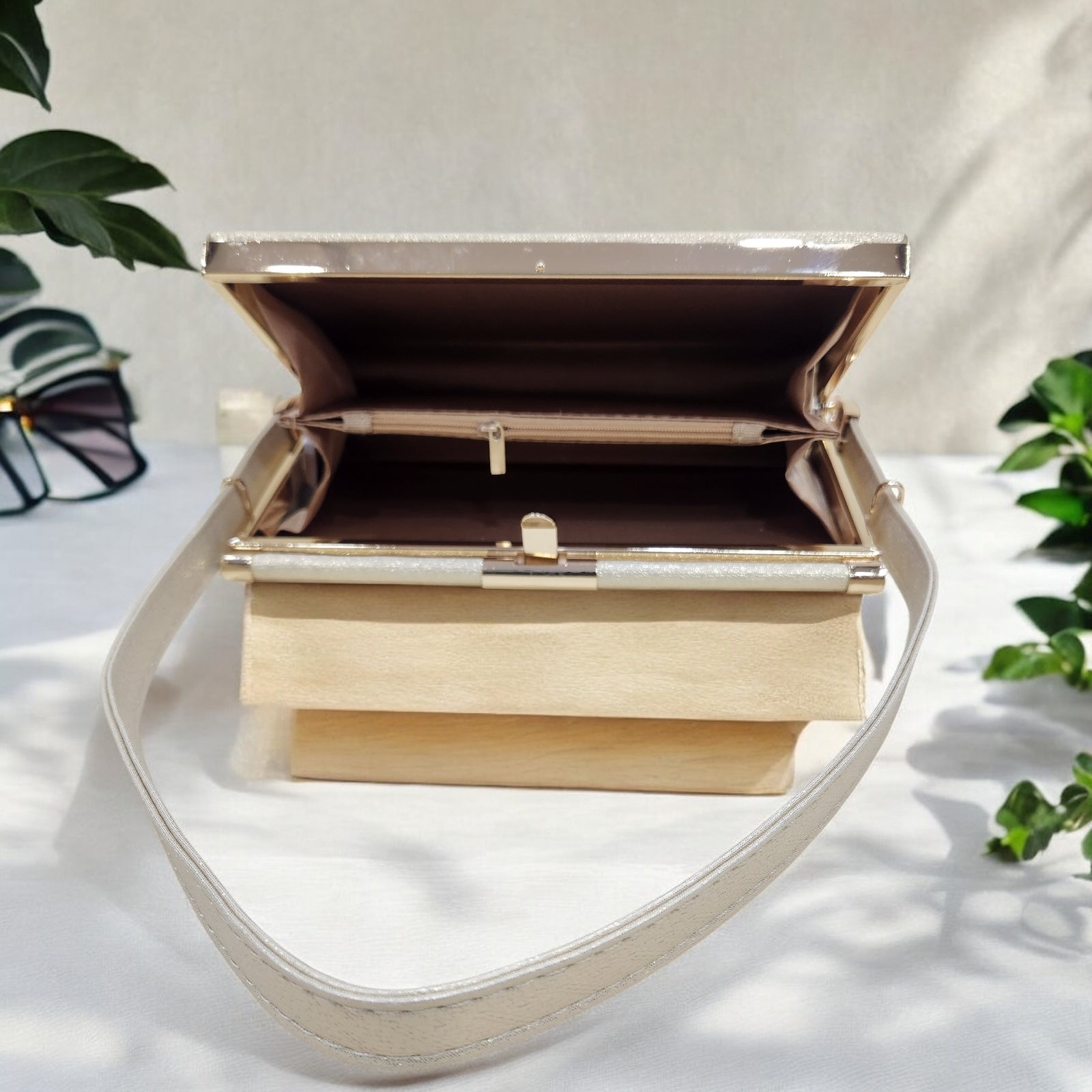 Elevate your style with this elegant vertical frame box clutch, featuring a stunning chevron texture crafted to perfection. Adorned with a striking oversized diamond knob, it adds a luxurious touch to any outfit. The adjustable handle, modifiable from both sides, allows versatile styling as a wristlet or a chic shoulder bag, making it both practical and sophisticated.