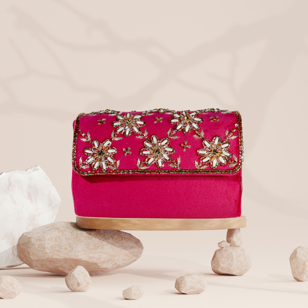Crystal Blossom Rani Velvet FlapOver Clutch Bag