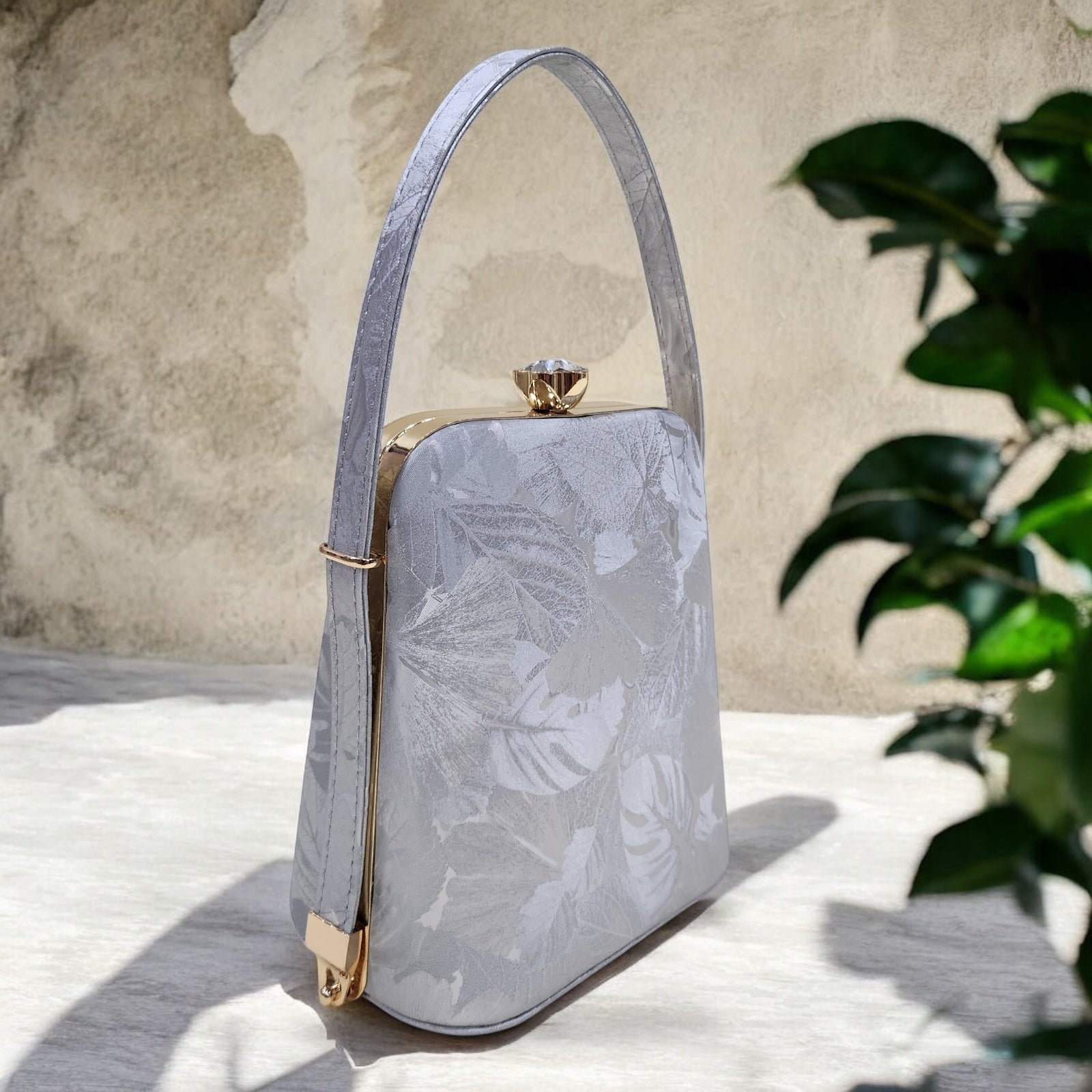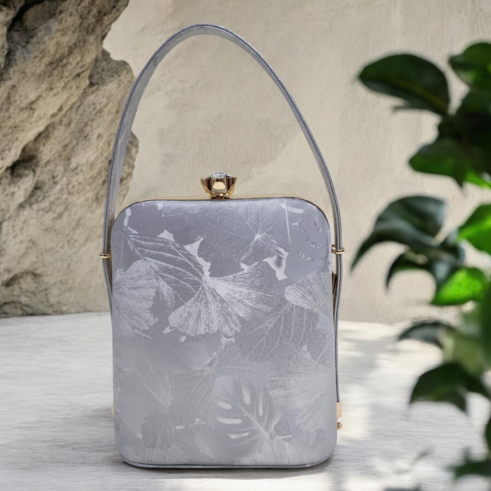 "Elevate your style with this spacious and uniquely shaped boxy clutch, featuring a delicately crafted floral print on soft PU leather for a refined touch of modern elegance. Accentuated with a striking knob, this piece adds a hint of luxury to any ensemble. The adjustable handle offers versatile styling, allowing you to carry it as a wristlet or a chic shoulder bag—perfectly blending practicality with sophistication."