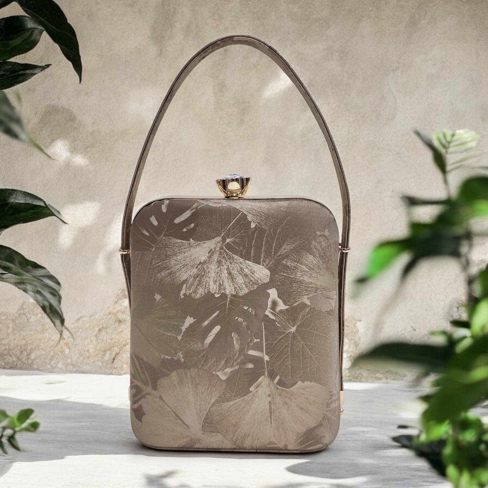 "Elevate your style with this spacious and uniquely shaped boxy clutch, featuring a delicately crafted floral print on soft PU leather for a refined touch of modern elegance. Accentuated with a striking knob, this piece adds a hint of luxury to any ensemble. The adjustable handle offers versatile styling, allowing you to carry it as a wristlet or a chic shoulder bag—perfectly blending practicality with sophistication."