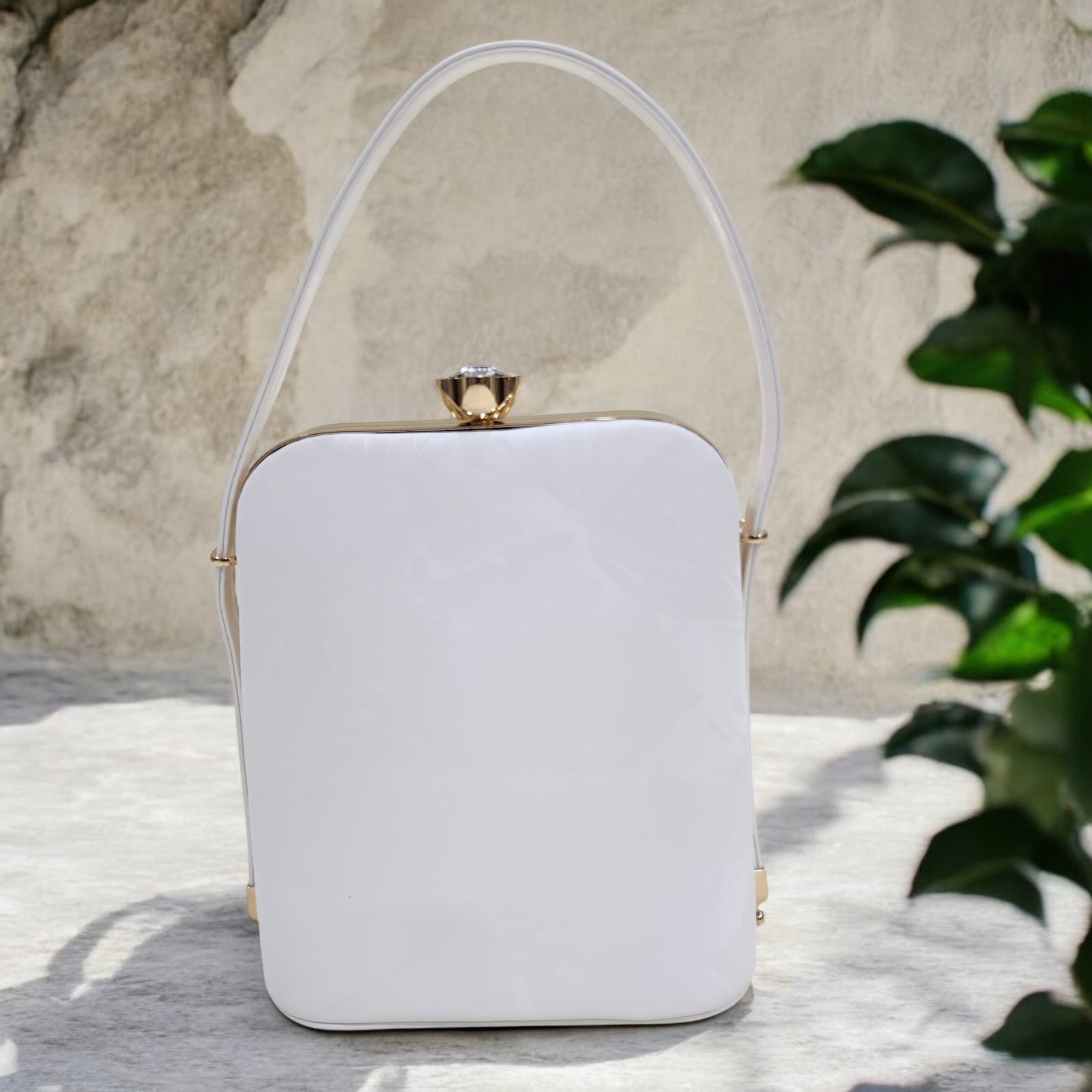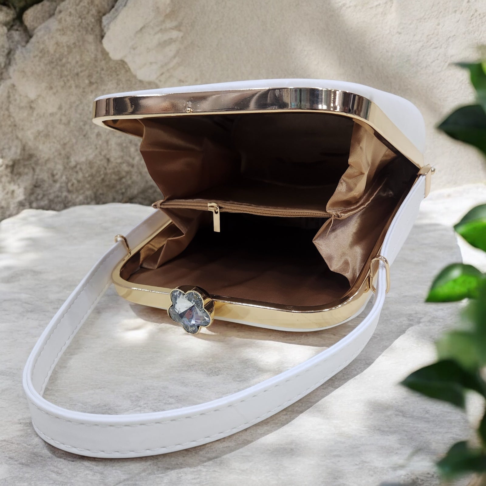 "Elevate your style with this spacious and uniquely shaped boxy clutch, featuring a delicately crafted floral print on soft PU leather for a refined touch of modern elegance. Accentuated with a striking knob, this piece adds a hint of luxury to any ensemble. The adjustable handle offers versatile styling, allowing you to carry it as a wristlet or a chic shoulder bag—perfectly blending practicality with sophistication."