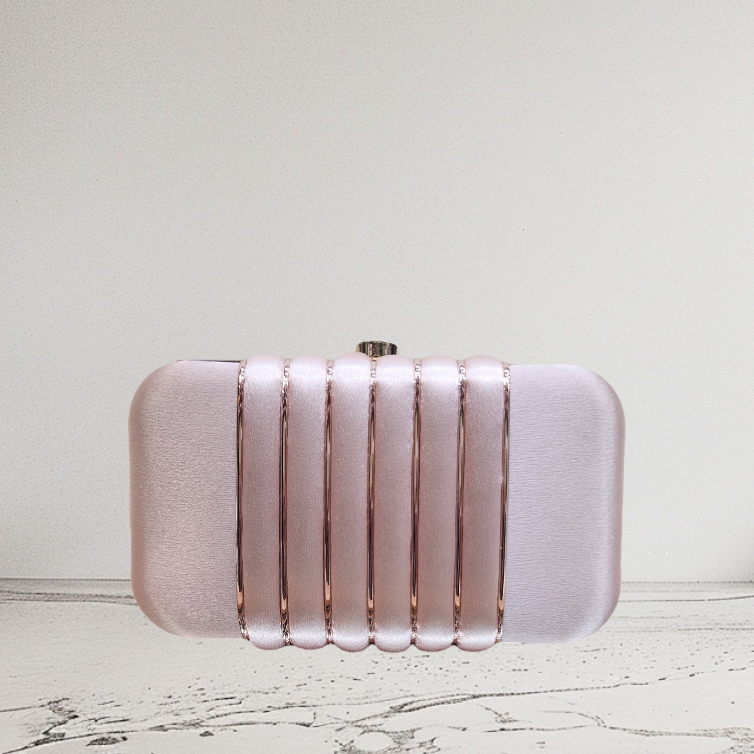Elevate your elegance with this timeless satin box clutch — a sleek blend of modern structure and classic sophistication. Crafted in a premium satin finish with luxe metal stripe accents.