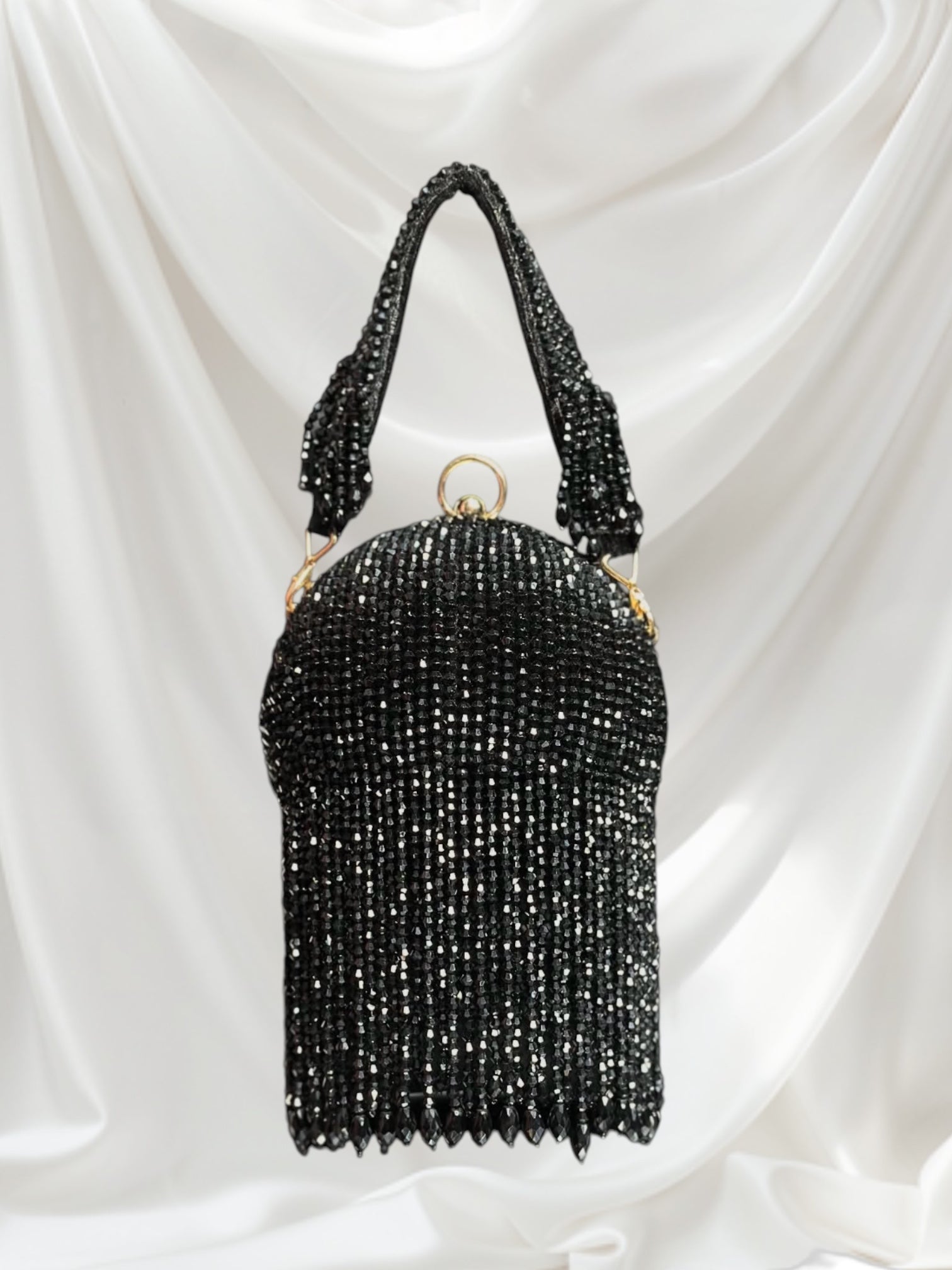 Turn heads with this exquisite Crystal Ball Clutch, designed to dazzle at every celebration. Hand-embellished with shimmering crystals all over, this clutch features a bold spherical silhouette for a unique statement look. The handle is adorned with delicate crystal embroidery, while flowing crystal tassels cascade from the base, adding dynamic movement and glamour to your ensemble. Comes with a detachable metal sling chain for versatile styling. Perfect for weddings, parties, and festive occasions – a true blend of art and opulence.