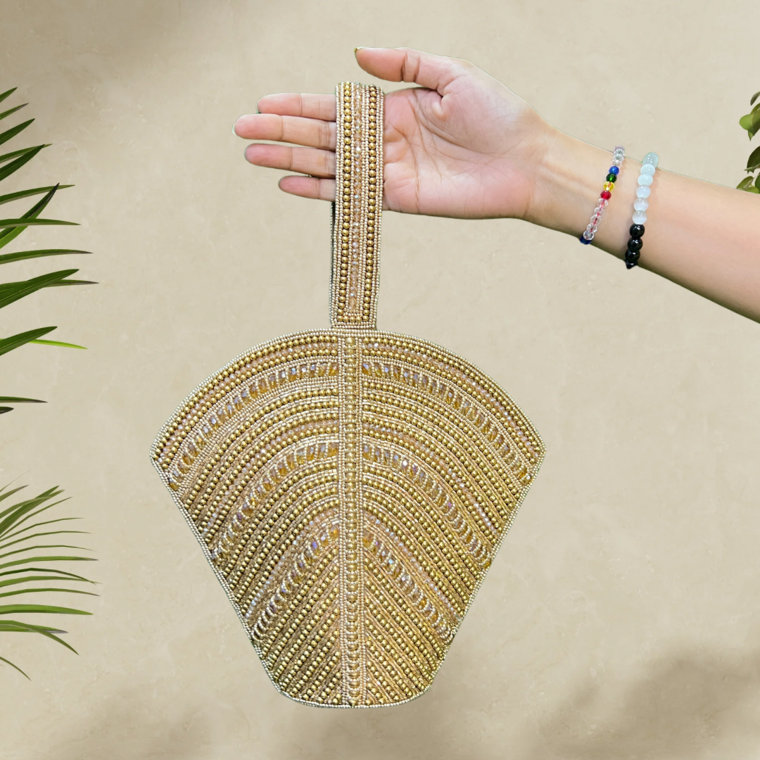 The detailed beadwork create a captivating effect, making this potli an ideal accessory for any special occasion. Whether you're attending a festive celebration or a glamorous evening event, the Radiant Blossom Basket Potli Bag is designed to add a touch of sophistication and charm to your ensemble. Embrace the allure of artisanal craftsmanship and let this stunning bag be the centerpiece of your look.