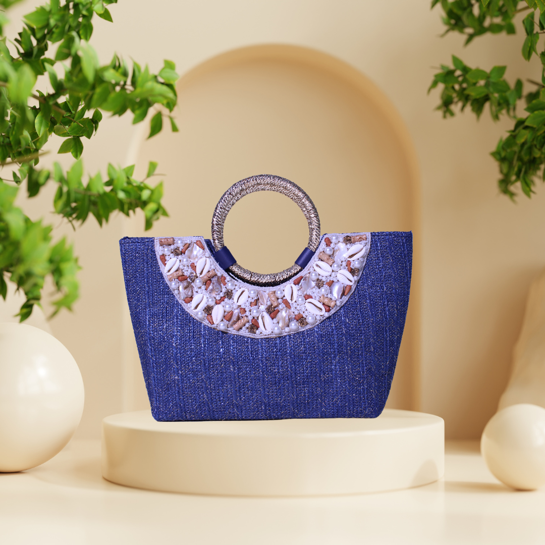 Ocean Inspired Navy Blue Jute Bucket Bag