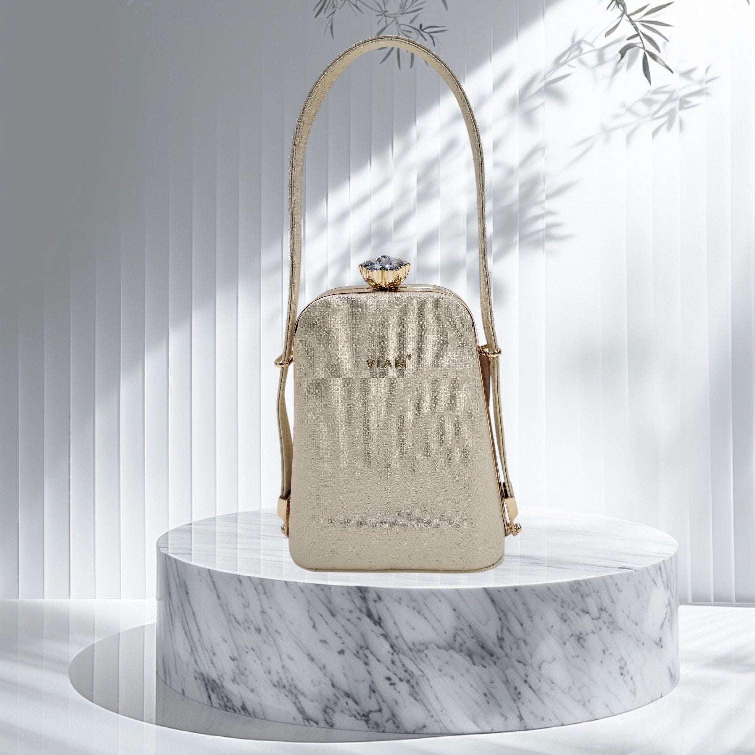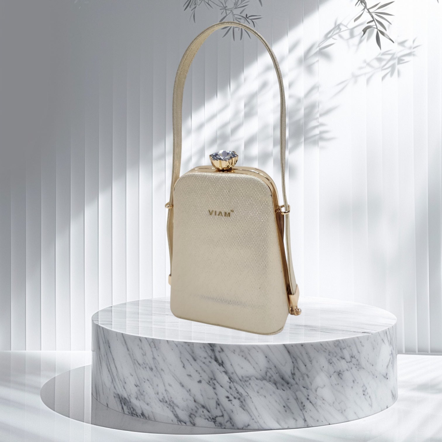 Elevate your style with this elegant vertical frame box clutch, featuring a stunning chevron texture crafted to perfection. Adorned with a striking oversized diamond knob, it adds a luxurious touch to any outfit. The adjustable handle, modifiable from both sides, allows versatile styling as a wristlet or a chic shoulder bag, making it both practical and sophisticated.