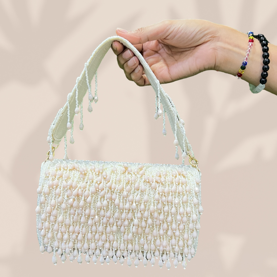 Reverie Beaded Cream FlapOver Clutch Bag