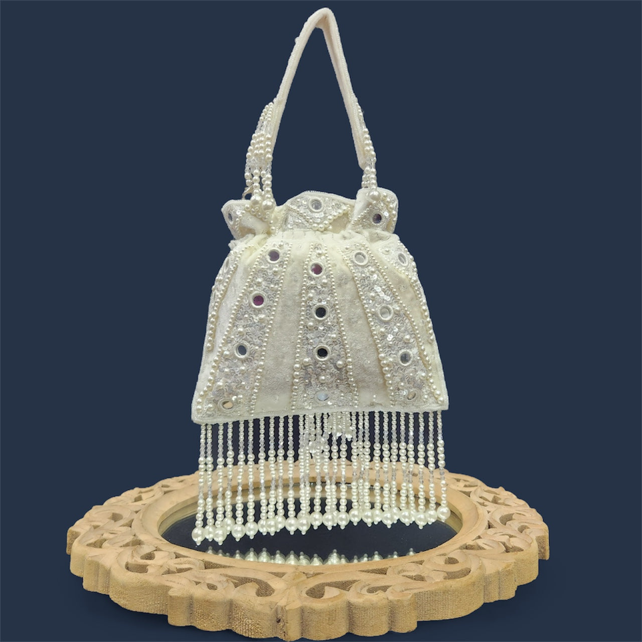 Sheesh White Potli Bag