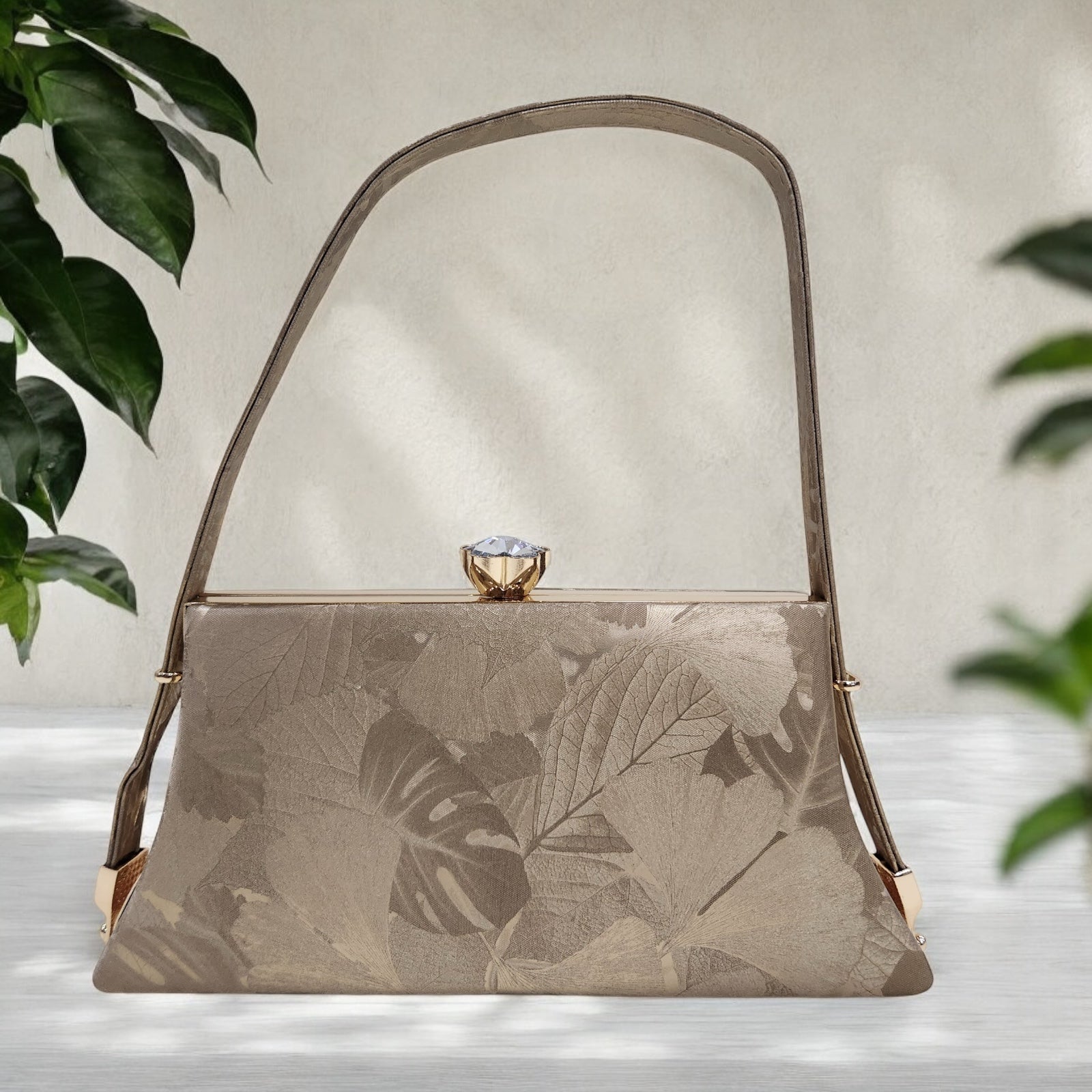 "Elevate your style with this elegant horizontal frame box clutch, featuring a delicately crafted floral print on soft PU leather for a modern yet timeless appeal. Accentuated with a chic lock, this clutch exudes luxurious charm, effortlessly enhancing any outfit. Designed for versatility, its adjustable handle can be modified from both sides, allowing you to style it as a wristlet or a sophisticated shoulder bag—making it the perfect blend of elegance and practicality."