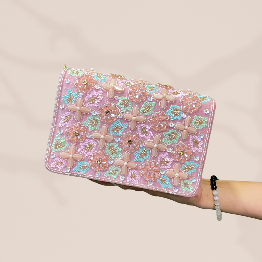 Whimsical Bloom Pink FlapOver Clutch Bag